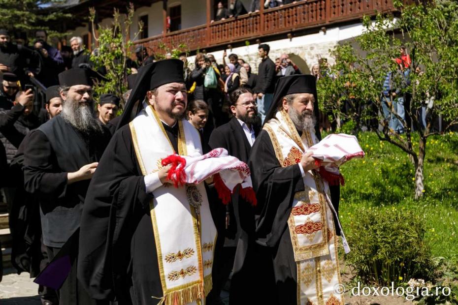 Bucuria aceasta se cere a fi primită în inimile noastre, o bucurie cinstită, spre a mărturisi și noi precum o facem în biserică: „Toată darea cea bună şi tot darul desăvârşit de sus este, pogorându-se de la Tine, Părintele luminilor, și Ție slavă înălțăm...”. Această slavă au mărturisit-o și au primit-o cei doi părinți, sfințindu-se și făcându-se ei înșiși purtători ai acestei slave. Această slavă o mărturisim cu toții și vă mulțumesc tuturor celor care ați venit cu evlavie și cu cinstire împreună cu noi la acest moment. Mulțumesc, de asemenea, tuturor celor care ați fost și sunteți alături de părinții acestei mănăstiri. Mulțumesc părintelui stareț Arsenie și obștii acesteia, care are o moștenire puternică, o moștenire care înseamnă și binecuvântare, dar și chemarea de a urma acestor nevoințe și acestei vieți sfinte. Să ne ajute Bunul Dumnezeu ca, având și această întărire în inimile noastre, să ne întoarcem acasă mai puternici și să mărturisim ceea ce am văzut cu ochii noștri: oseminte scoase din mormânt, pe care le-am descoperit a fi sfinte moaște purtătoare de bună mireasmă și purtătoare de har! Să fiți binecuvântați!